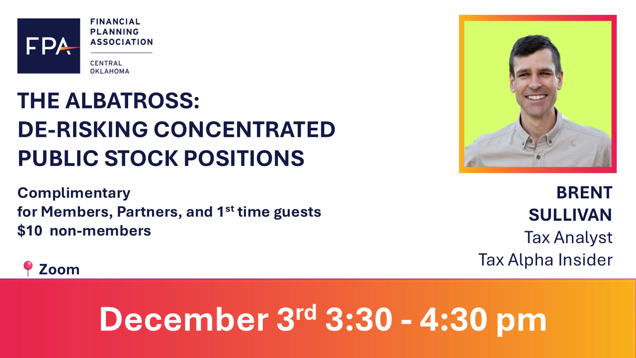 December 3rd - (virtual) CE Event - De-Risking Concentrated Public Stock Positions (Brent Sullivan)