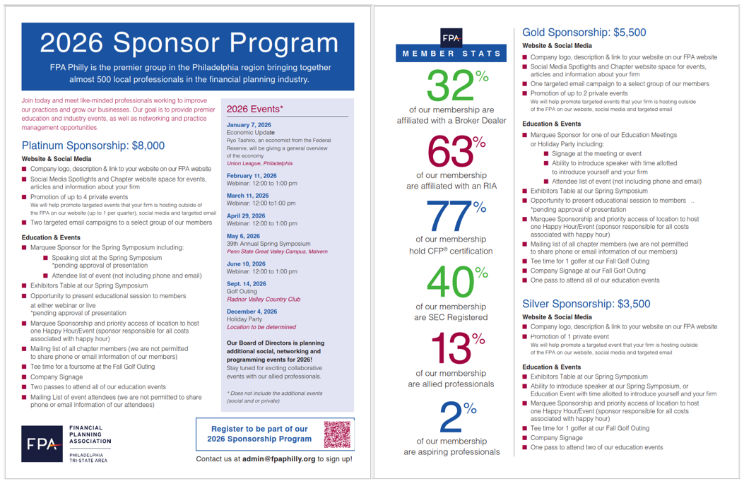 - We will help promote targeted events that your firm is hosting outside of the FPA on our website (up to 1 per quarter), social media, and targeted email